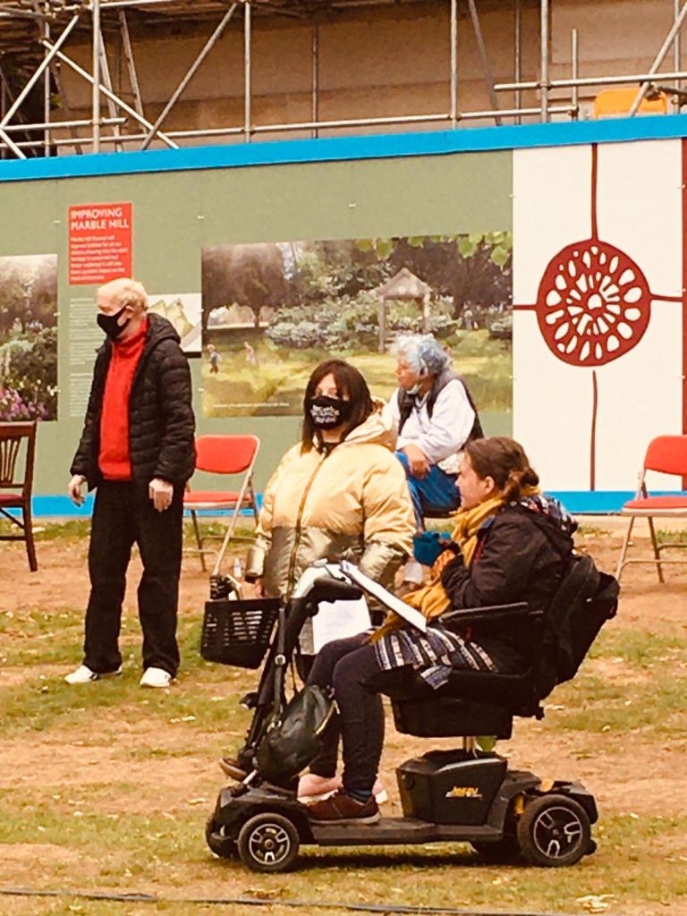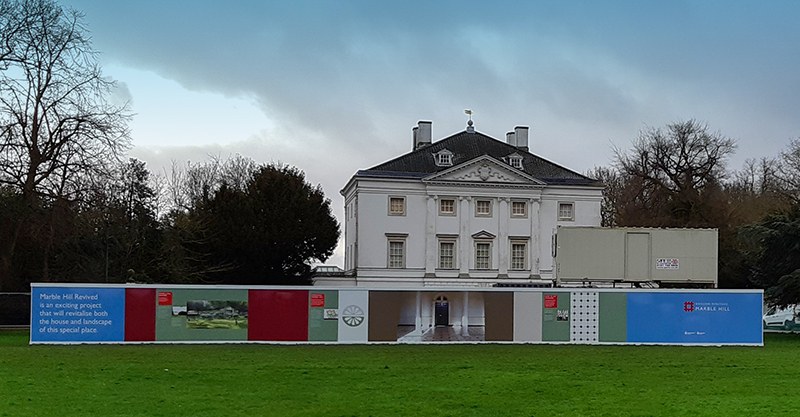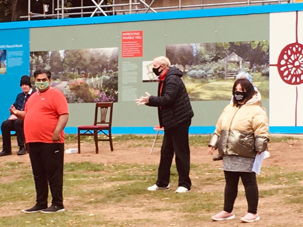 Notwithstanding the greyness of the afternoon with the first signs of leaves turning golden brown, the Ignite Me Theatre enthusiastically presented its latest workshop against the backdrop of Marble Hill House, sadly neglected since the 1980s. All that is now about to change for with the help of part of a £4 million grant from the Heritage and Community Fund, restoration is now underway. Marble Hill is on its way to being revived, its story brought to life and investment in its long term future secured.