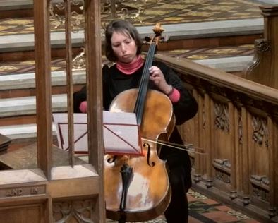 David Pimm and Amy Gould’s version of Benedictus resonates as a musical embodiment of the blessing of peace after war. Its clarity and sense of direction makes the piece soul piercing and almost unbearably moving. Sir Karl Jenkins himself describes the movement as intuitive and simple. The D major opening on the organ does not sound at first like an introduction and the cello comes in almost immediately. As it develops, the cello solo is set high in the instrument’s register giving it an ethereal and spiritual elation that makes the piece so deeply touching. Gould plays the solo with a gravitas and seriousness that paradoxically lightens the pieces and makes it float on the precise and uplifting base of Pimm’s organ bedrock. But my, he really does know how to make the venerable Bishop organ sing. This is a magnificent instrument, a gift from King William IV to his own parish on his coronation in September 1831.