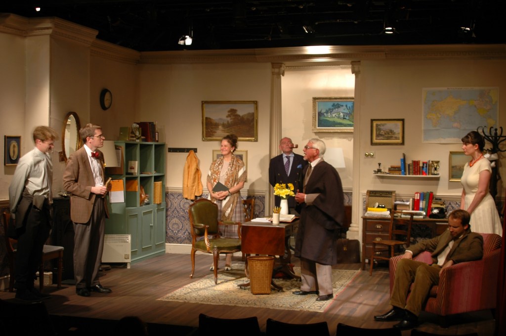 This leaves us with St John Quartermaine himself, the Peter Principle in person. He doesn’t fall into any of the natural pairs that the rest of the cast do, and experiences little of the unseen drama that surrounds the others. Indeed, in the scene closest to conventional farce in the play, he finds himself accepting a succession of invitations that he will be unable to honour, as though he can only live through others. He is a man onstage alone at the start and the end of the show, and – but for a missed trick of direction – would be at either side of the interval as well, as the dialogue indicates. It’s a difficult role to essay, then, so lucky Luke Daxon finds a precision in the vagueness, bringing life to what might otherwise be an abstract portrait of tweedy English chauvinism for whom the clock is ticking.