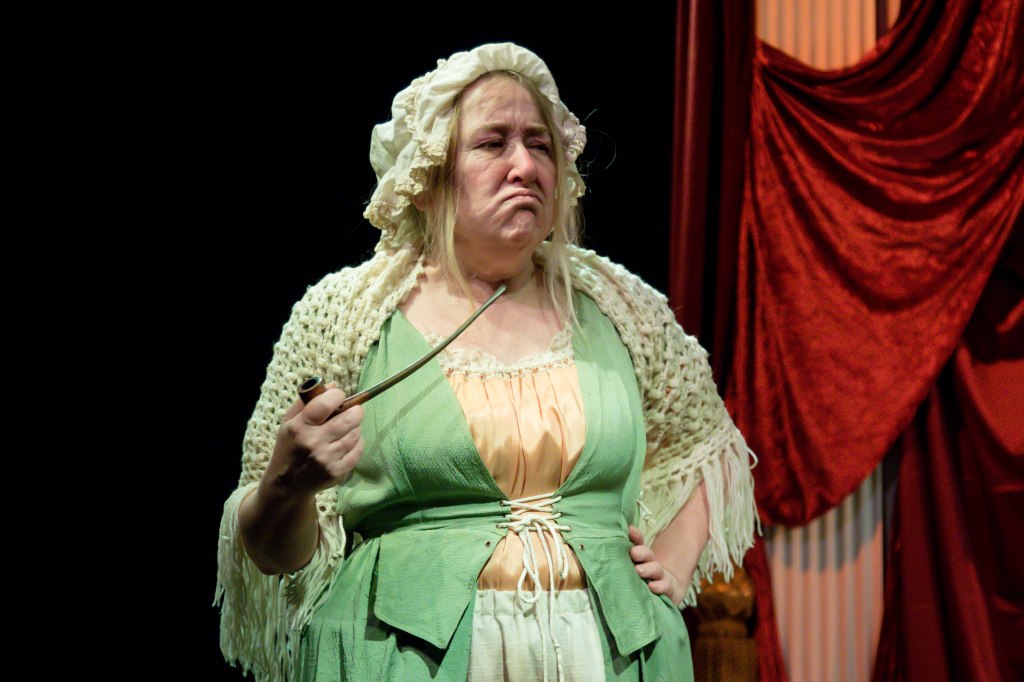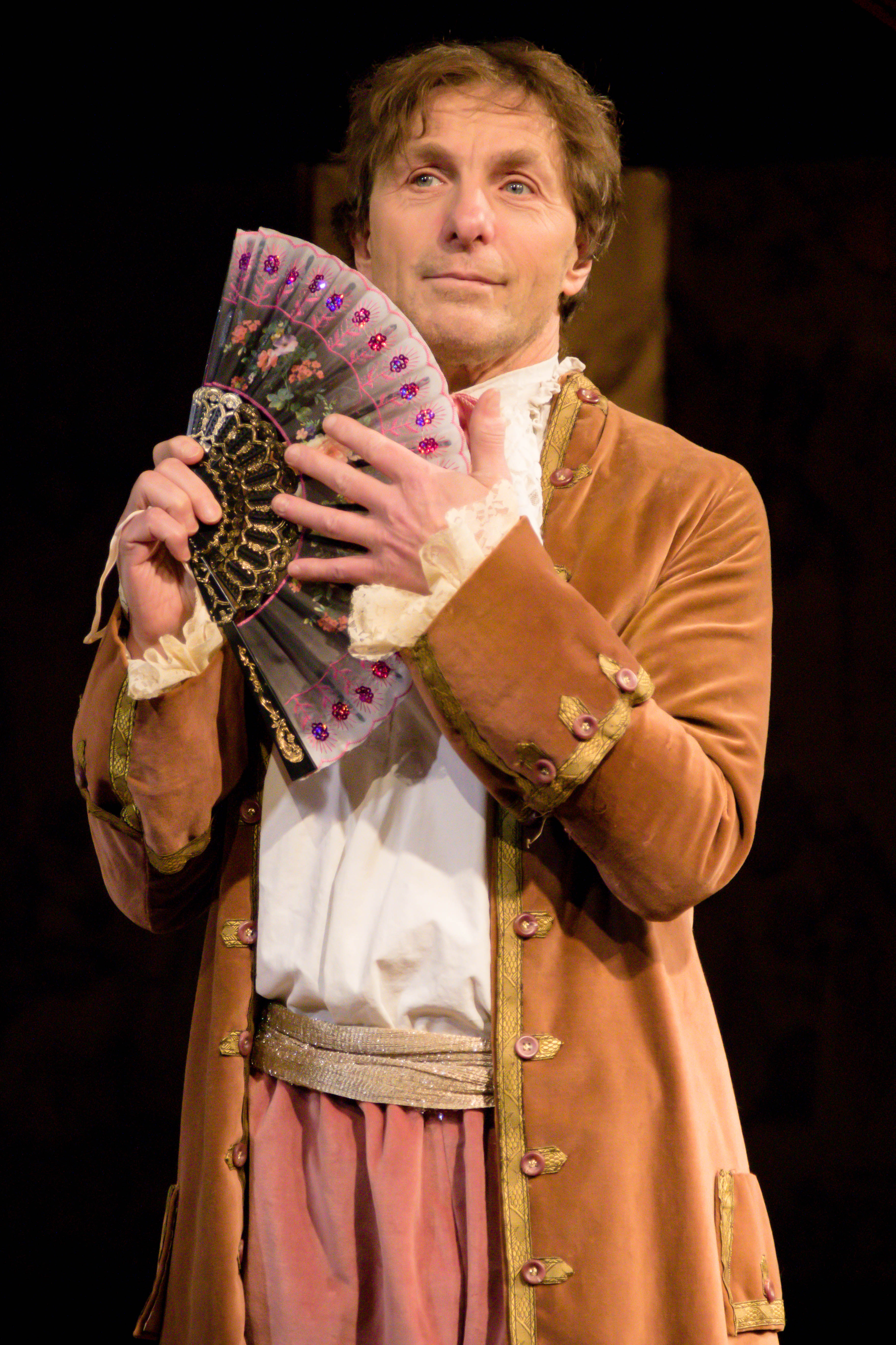 Another excellent performance is that provided by Tony Cotterill as the foppish camp actor, Edward Killigrew, whose acting specialism was the portrayal of female roles. Cotterill gives a very controlled performance, it would have been so easy to have sent this role up, but he errs on the right side of caution. His demonstration of the use of the fan and its hidden language secrets was a sheer delight. Humorous play also on the word ‘Actress’ as ‘act or less.’