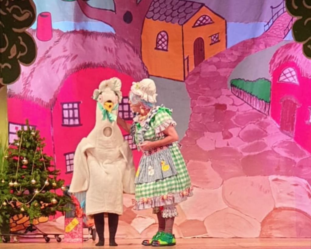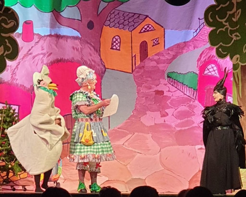 The curtain went up on Mother Swan to the strong coloured set of Barnesville, before which we were presented with its witty script. The tongue-in-cheek delivery by the eponymous Mother Swan and her son Silly Billy set the plot.