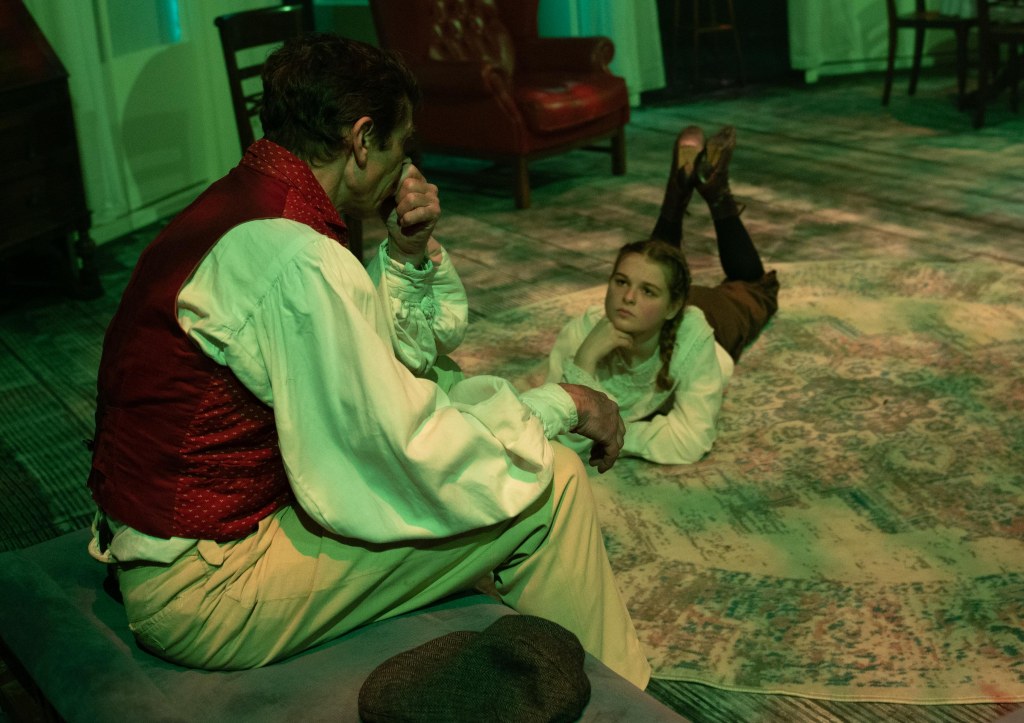 In real life, the artist Will Dearth (David Hovatter) despises himself having abandoned his art and turned to drink. His wife Alice (Alex McDevitt) despises him too, and they both wonder if things might have been different if they’d had a child. In the wood, Will sticks to his true calling as an artist, and has a loving daughter Margaret (Mia Lepper). He is happy, but Alice, who had different aspirations, finds that things don’t work out the way she expected and is penniless.