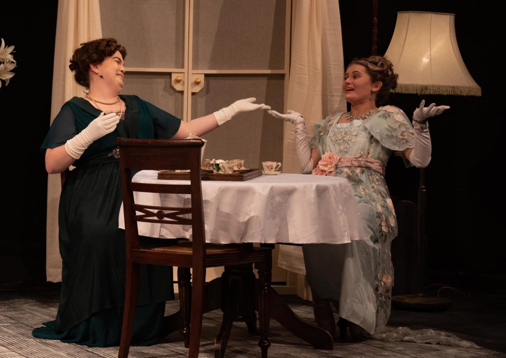 The acting and costumes in this production were exemplary, and Questor’s smaller Studio theatre provided an intimate environment that forced the audience to engage with the action, and perhaps reflect. Special mention should go out particularly to Arabella Jackson, for her portrayal of the deliciously catty mistress Joanna Trout, and to David Hovatter who was very convincing as the disillusioned drunk Will Dearth in the real world, but loving father in the alternative one.