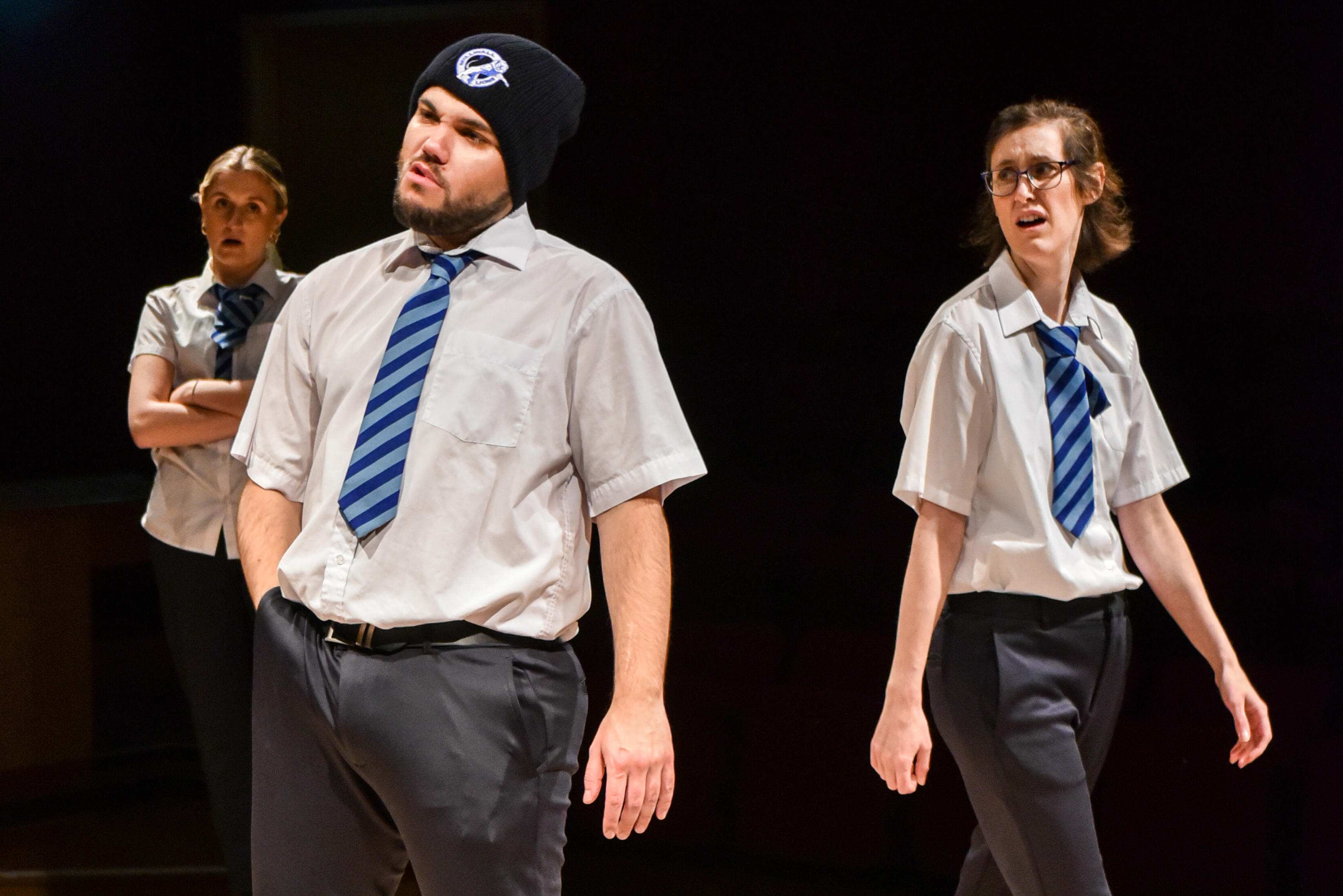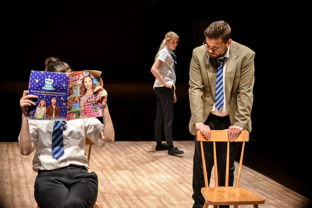 In fact Josh Clarke, who plays young Salty, Caroline Gudge (Hobby) and Joanna Taylor (Gail) also have to nail twenty other characters ranging from gushing headmistress and idealistic drama teacher to scary school bully and grumpy caretaker. They gender bend, playing parts of different ages and vastly different personalities, exploring their hang-ups and insecurities.