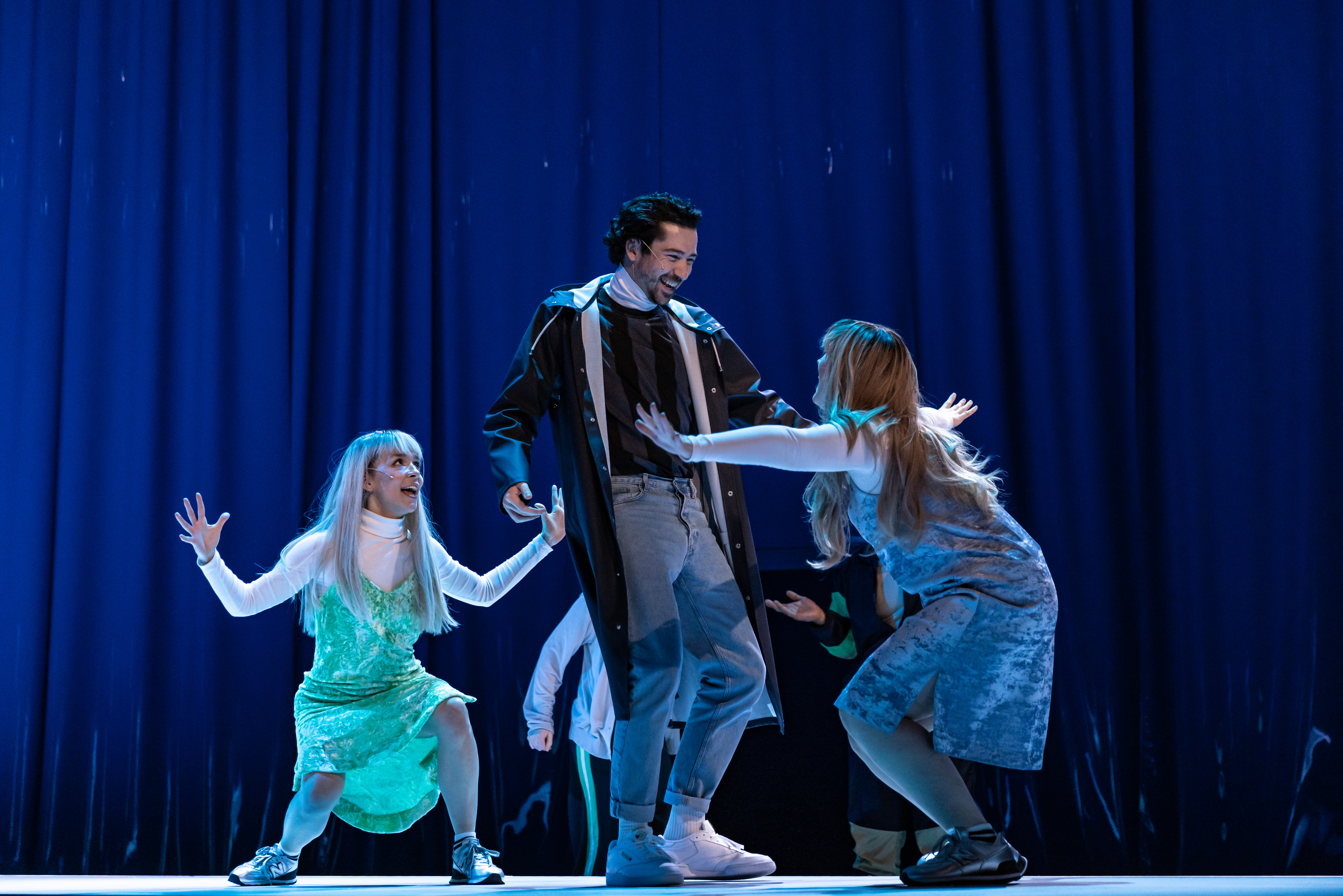 An inventive stage doubles as a neon-lit disco dance floor and a foaming sea spume of soapsuds for bathers’ frolics.