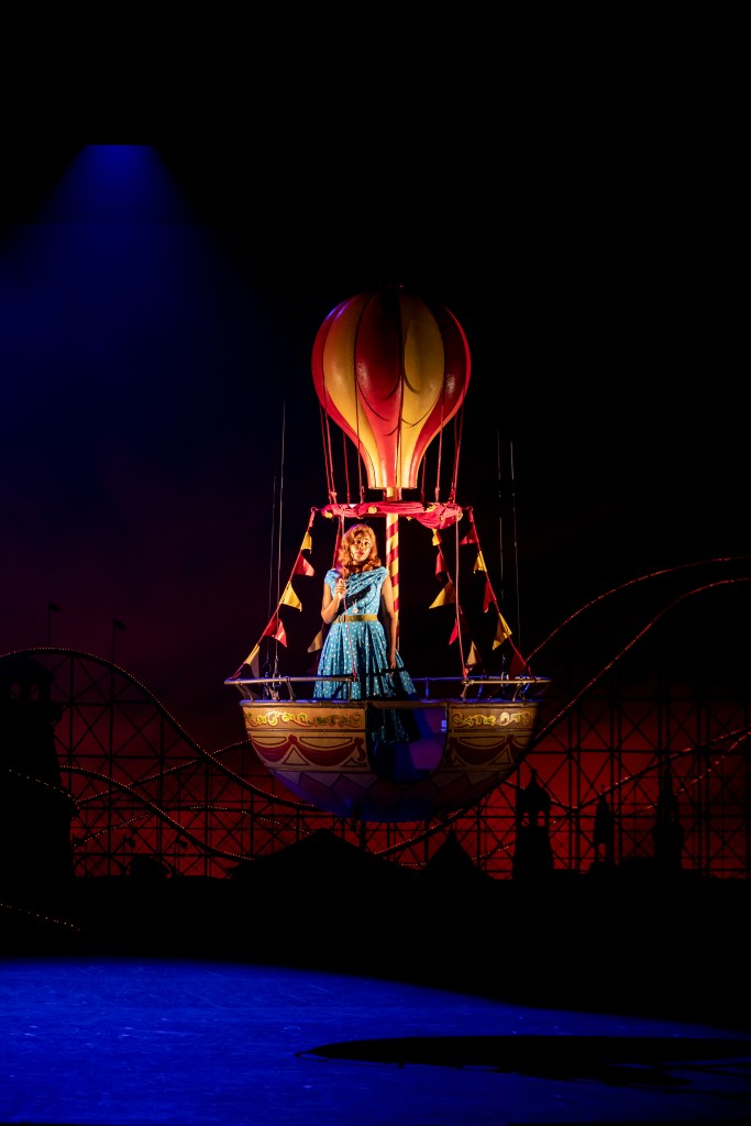 The comedy is dialled back slightly in the second act as the disguised suitors gradually overcome their fiancées’ resistance. While Dorabella initially seems quite happy to enjoy the company of the men while their future husbands are apparently away waging war, Fiordiligi takes to the air in a pod from the backdrop’s Ferris wheel and orbits the stage as she sings hauntingly of her regret and repentance for succumbing to their advances.