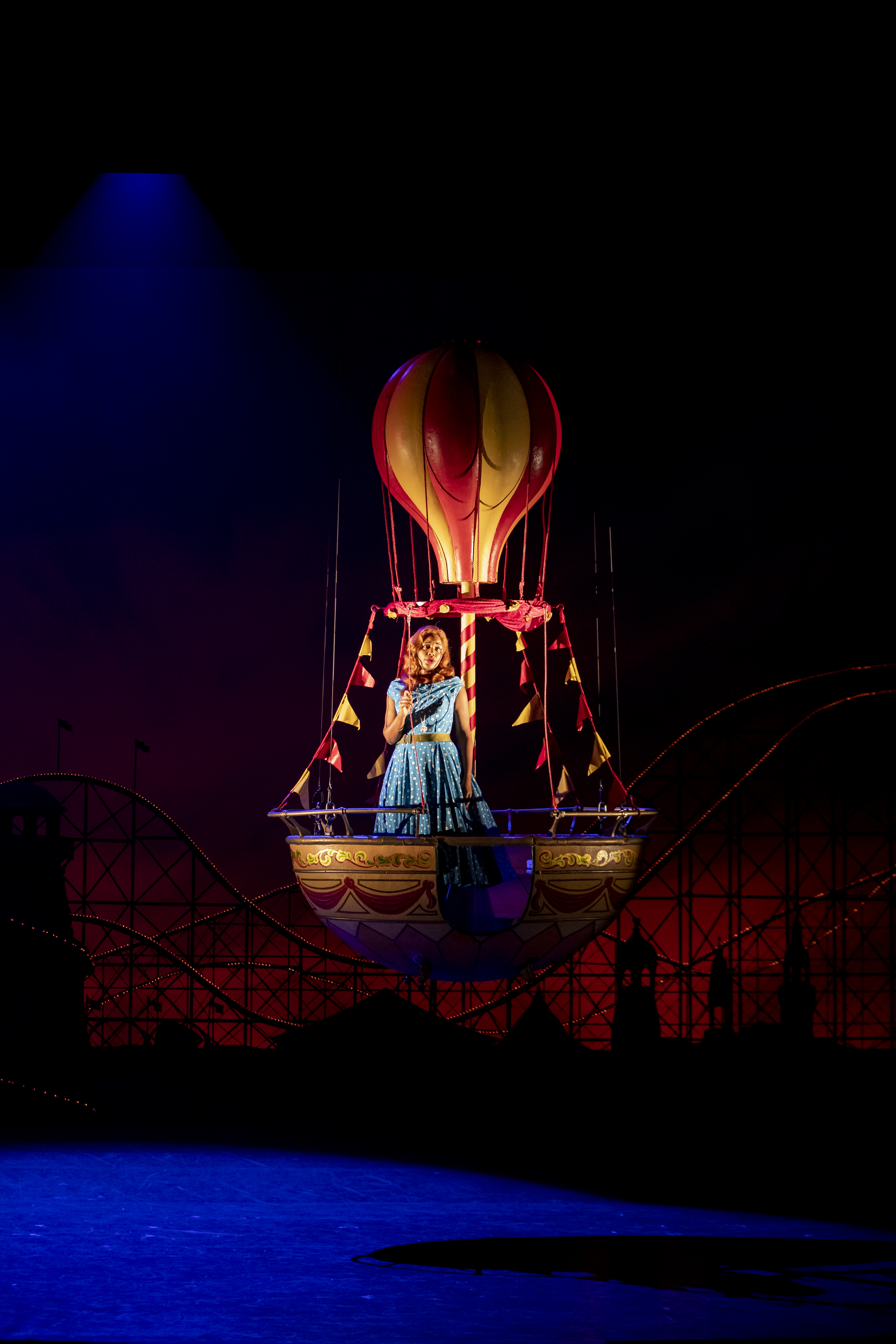 It goes without saying that the male characters’ behaviour is outrageous and abusive by modern standards, but the production makes no attempt to disguise this fact or to excuse Ferrando and Guglielmo. Don Alfonso passes off his manipulation as some sort of moral lesson and everyone incredibly seems fairly happy with this. The improbable ending works in this semi-modern dress production due to the heightened atmosphere created. The fairground setting, given a surreal twist by Joby Carter’s artwork, and by set details including heart-shaped illuminated arches and swan carriages, give the second half a dreamlike quality, and soften the turmoil experienced by the main characters.
