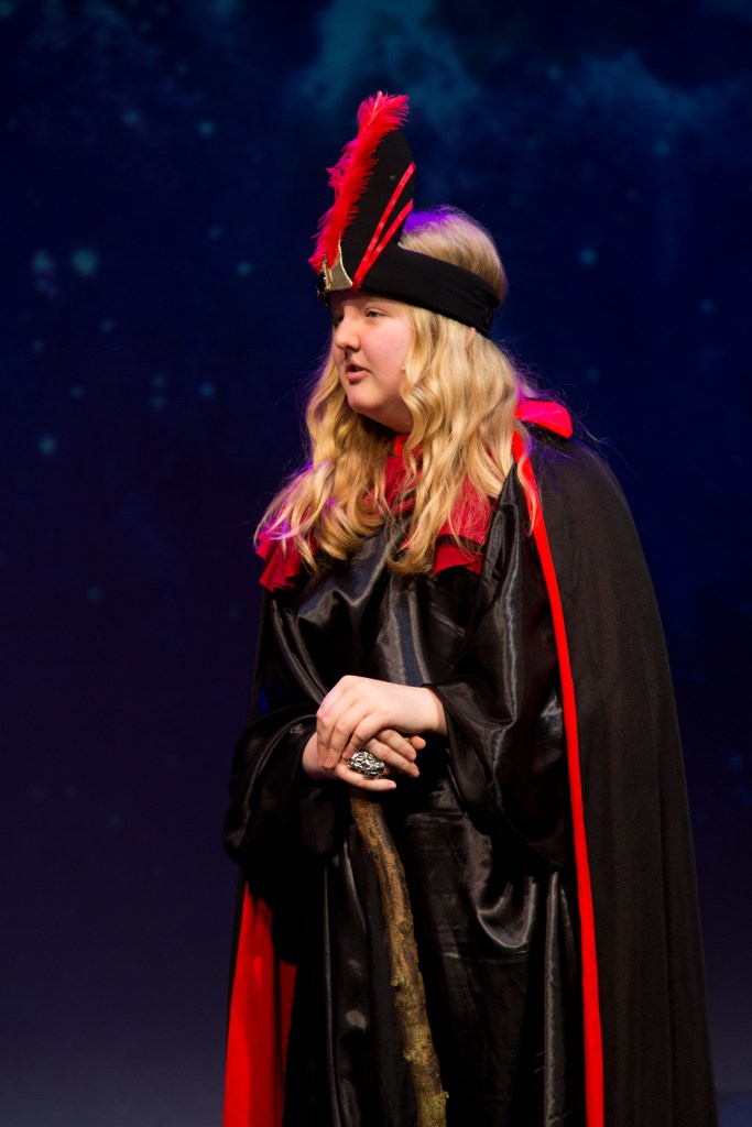 Along with the carpet ride was a beautifully performed song, A Whole New World. Throughout this song the pair would visit new worlds whilst ‘soaring, tumbling and freewheeling through the endless diamond sky’. On both nights they sung beautifully and showed passion in their singing. By the end of the song the pair were inseparable, but little did they know the evil Jafar (Joshua Briggs and Eva Scargill) had a plan hatching.