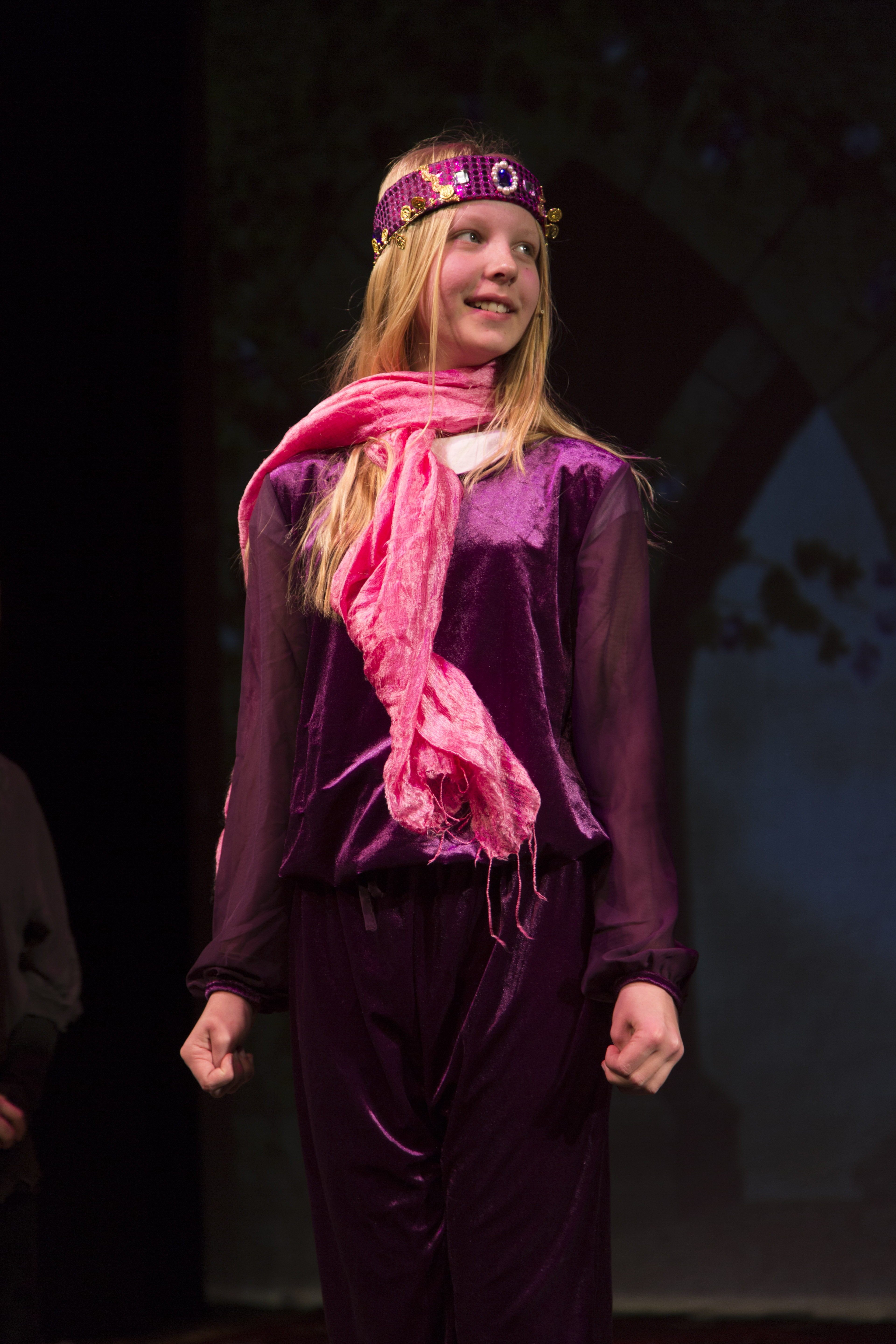 The Red Cast featured the highly watchable Jamie Brinsden as Aladdin and the vibrant Charlotte Azurdia-Latter as Princess Jasmine. Together with the sharp and witty Genie, Scarlett Simpson, this production exuded an array of energy and colour. Aladdin’s supporting pals, Babkak, Omar and Kassim all had a good rapport and stage presence, which shone through with just the right amount of humour. The supporting cast were of a high standard, and mentions should be made to Jafar, the baddie, played by Elliot Wilson and his wisecracking sidekick Iago, beautifully portrayed by Elizabeth Biesty. However, the whole cast should be commended for their full commitment and high performing standards.