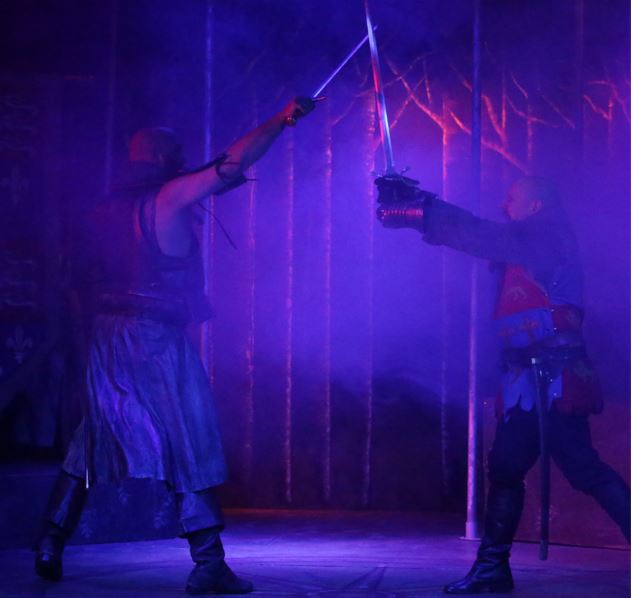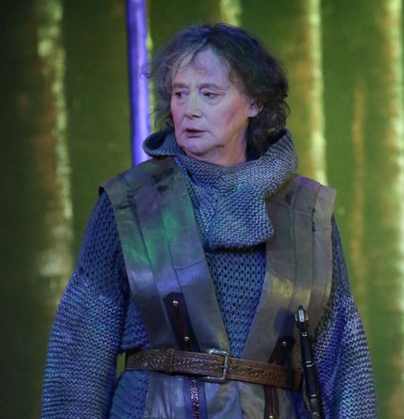Actors playing different roles and different gender in the same production can be problematic, but this was not the case here. Luciano Dodero who plays Harry Percy, known as Hotspur, is outstanding in this role. He, like Falstaff, is able to break the fourth wall and this creates a special intimacy between actor and audience. Dodero also plays Lord Hastings in Part II and is equally as effective. Lily Tomlinson forcefully plays the younger son of King Henry IV, Prince John of Lancaster. I was completely convinced by her performance. Her hairstyle, striking features and costume attire together with her youth all worked for her, and I completely forgot this was a young woman acting this role. Another gender switch was Cath Messum who plays Glendower, leader of the Welsh rebels, and said to have supernatural powers. Such was the quality of her ability to play a male role I soon forgot any reservations I may have had about gender.
