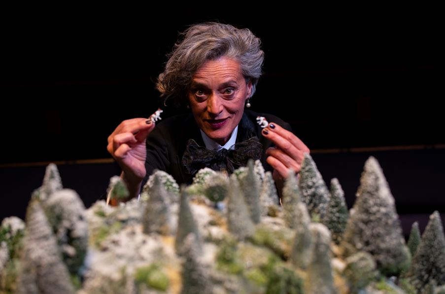 From the bare stage of the play’s opening, the deteriorating weather is conjured simply but effectively through lighting effects, sound, and through clouds of dry ice until at times the actors are almost lost in the fog. Director Oscar Toeman uses all the resources at his disposal to conjure the Black Forest on an empty set.