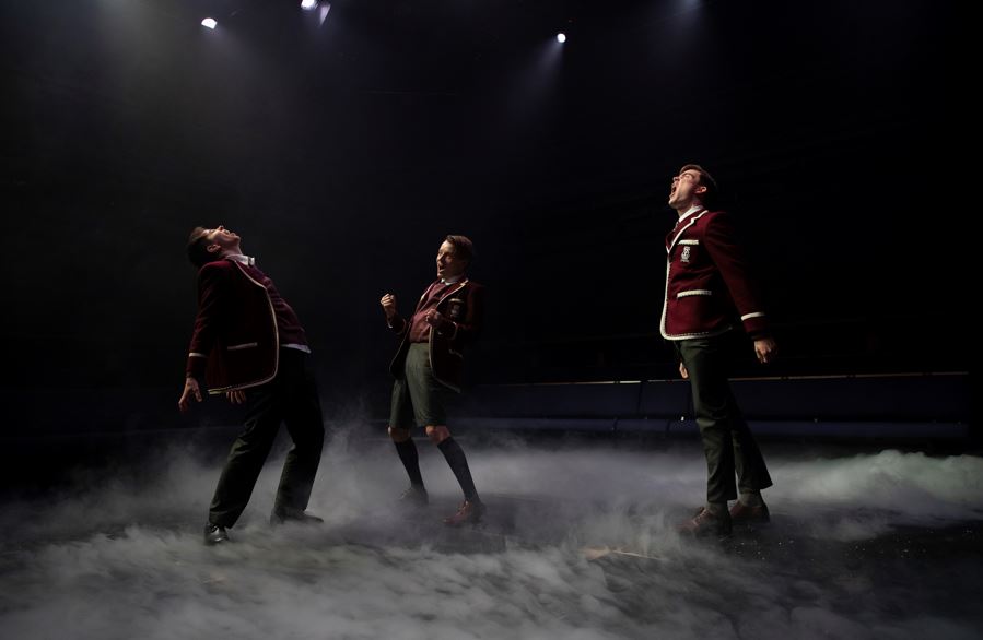 The Misfortune of the English is a play that contains much food for thought, and feels very timely. We are told about the aloof, arrogant Hitler Youth members, but it is three British boys who are wearing uniforms and marching around the stage. And it’s three British boys who are constantly reminding us that in 1936 Britain was an imperial power, and that “London is the capital of the world”, as Eaton puts it helpfully. It’s a British schoolboy who interrogates Lyons about his Jewish heritage, and at one point the boys listen to political insults (including some very modern examples) spewing from a radio.