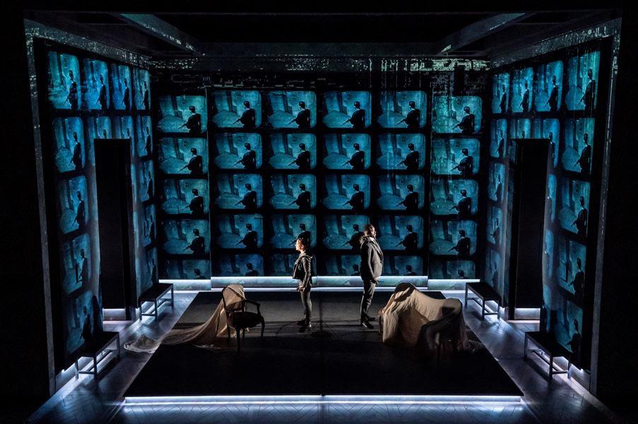 Whatever you might think of the man’s prose, author Dan Brown does have an incredible knack for weaving engaging narratives with twists and turns, using art history, myth and conspiracy theories to keep the reader engaged. If the man should ever decide to build an escape room I would be first in line. This makes The Da Vinci Code an impressively ambitious story to bring to the stage, with its many chases, grand locations and travelling between countries. Director Luke Sheppard and his creative team rise to this challenge and make excellent use of movement and projection to move the story along with a sleek and flexible set that only needed small adjustments to indicate a variety of places. Throughout most of the evening, there is pulsating electronic music reminiscent of a 90s heist movie. It is honestly quite effective in setting the mood, you half expect to see Catherine Zeta-Jones dodging lasers or Tom Cruise hanging from the ceiling as you enter the venue.
