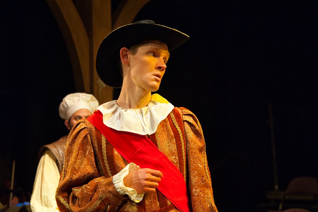 Rajeev Soni turns in a fantastic performance in the challenging role of Christian de Neuvillette. Smitten with Roxane, Christian is a handsome but pragmatic soldier, his direct speech no match for Roxane’s poetic soul. The temptation to play such a part for laughs is clear, but Soni plays it all admirably straight, adopting stiff body language and making the most of his imposing height to convey Christian’s essentially awkward nature.