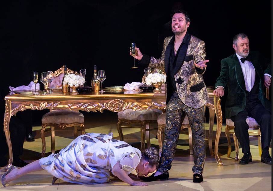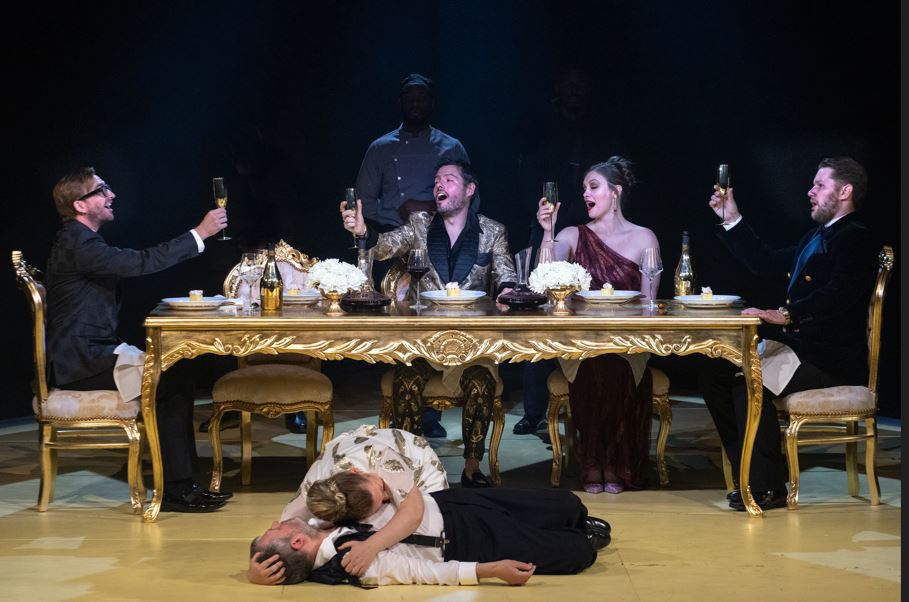 There is an unnerving opulence about the final banqueting scene, which could be from a Peter Greenaway film or a Caravaggio painting. Here Tamerlano entertains his reluctant guests and heartlessly humiliates them. He is saved from an attempted poisoning by the intervention of Irene, but Bajazet takes his own life. This is where the Hyam-Handel plot becomes improbable, in that Tamerlano, moved by Bajazet’s death, uncharacteristically does a U-turn and pardons Asteria and Andronico, allowing them to marry, while he will marry Irene. In this production, with Asteria on the floor cradling the still warm corpse of her father, the guest go insouciantly back to the banqueting table … for their pud.
