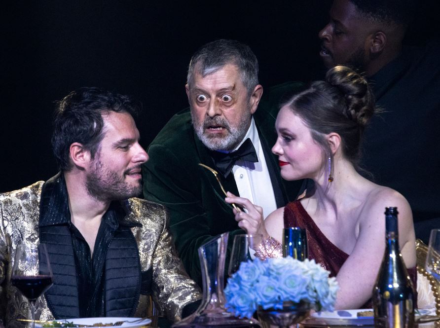 There is an unnerving opulence about the final banqueting scene, which could be from a Peter Greenaway film or a Caravaggio painting. Here Tamerlano entertains his reluctant guests and heartlessly humiliates them. He is saved from an attempted poisoning by the intervention of Irene, but Bajazet takes his own life. This is where the Hyam-Handel plot becomes improbable, in that Tamerlano, moved by Bajazet’s death, uncharacteristically does a U-turn and pardons Asteria and Andronico, allowing them to marry, while he will marry Irene. In this production, with Asteria on the floor cradling the still warm corpse of her father, the guest go insouciantly back to the banqueting table … for their pud.