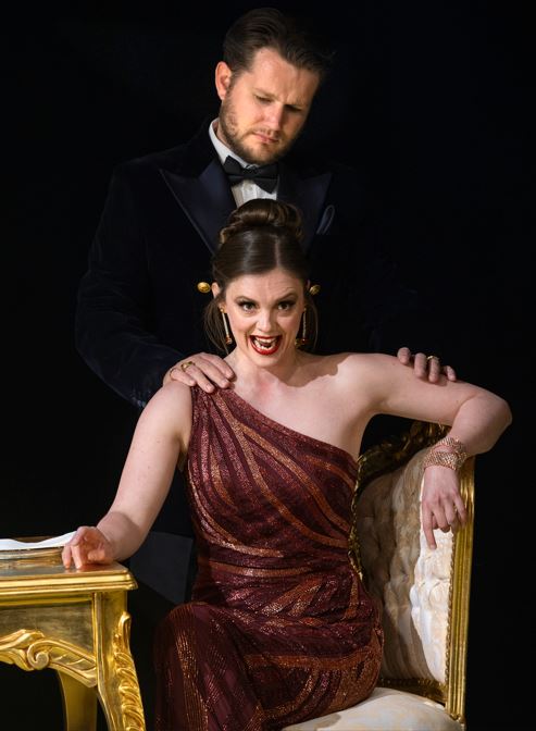 We have become used to seeing mezzo-soprano Angharad Lyddon in light bubbly roles such as Julia in Mansfield Park or Olga in Eugene Onegin, but here as Princess Irene, the ultimate femme-fatale, she is riveting. Totally unscrupulous and amoral, Irene knows how to make an entrance. Glamourous power-dressing is used as a weapon in her single-minded goal, to become Tamerlano’s Empress. Lyddon’s mezzo is velvety rich, strong and vibrant, particularly at the contralto end of the register.