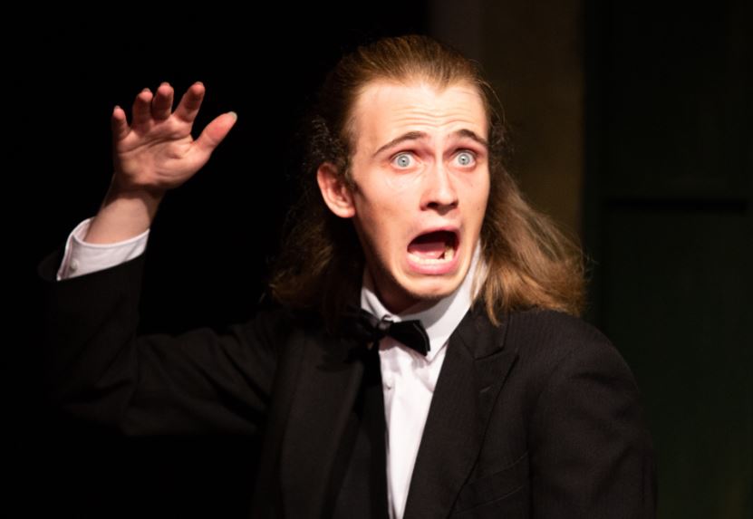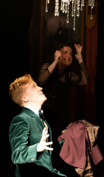The cast is led by Alfie Kennedy’s suave butler Wadsworth, who initially welcomes the visitors to Boddy Manor. Kennedy gives a ferociously committed and often entertainingly physical performance, throwing himself around the stage one moment, and relishing the character’s dry sense of humour the next, with more than a slight hint of Tom Hiddleston about him.