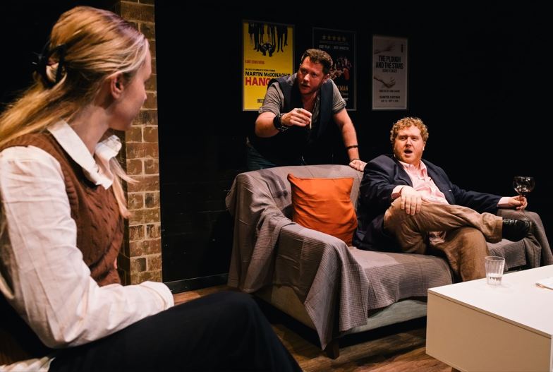 The set (Rich Evans) is one of the best simple, minimal sets in a small space I’ve seen for a while. There are three posters for Irish plays covering the work of Sean O’Casey, Jez Butterworth and Martin McDonagh on the wall of Leigh’s apartment. In front of these Leigh casually ignores Ruth’s British identity in favour of “everyone” thinking she’s Irish anyway, and thus the vacuity of virtue-signalling is illustrated more efficiently than could be achieved by any verbal explanation.