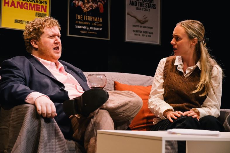 The set (Rich Evans) is one of the best simple, minimal sets in a small space I’ve seen for a while. There are three posters for Irish plays covering the work of Sean O’Casey, Jez Butterworth and Martin McDonagh on the wall of Leigh’s apartment. In front of these Leigh casually ignores Ruth’s British identity in favour of “everyone” thinking she’s Irish anyway, and thus the vacuity of virtue-signalling is illustrated more efficiently than could be achieved by any verbal explanation.