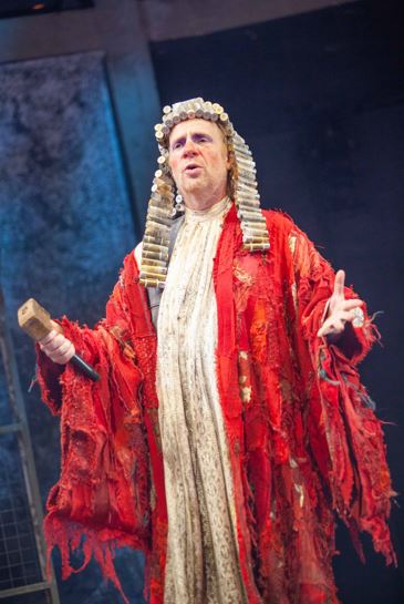 Likewise, Carrie Hope Fletcher who so convincingly plays Grusha Vashnadze, the young maid who saves the baby from imminent death and then at great danger to herself rears him herself. Interestingly this the one role in the play that is the closest to realism. And this is not without reason, for Grusha is the character who most closely represent the concept of truth, and here she parallels the symbolism of the chalk circle. Fletcher gives a memorable performance both for her acting and her vocal singing prowess.