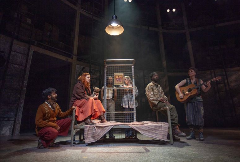 Steve Waters’ adaption of the play is close in spirit to the original. It is about the impact of war on people. This version relocates the story from warring Soviet communes to a modern-day refugee camp, one in which refugees are divided in their opinions about the use of land, whether the valley should stay as it is or whether it should be given over to the building of a dam. A singer enters the camp and helps to resolve the conflict through the re-enactment of the story of the Chalk Circle, inviting the refugees to participate and thereby creating a story within a story.