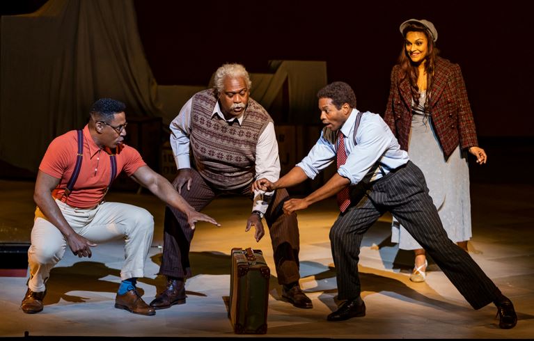 Wisely perhaps, there is no attempt at a carbon copy of the film. Heggie and his librettist Gene Scheer change Clarence, the second class angel without any wings, into Clara and give the part to a soprano. Danielle de Niese’s poised performance is heavier on charm than vulnerability. She takes flight at the end, but, oddly, Aletta Collins’s production and Gabrielle Dalton’s costumes don’t give her (or the other angels) wings. The James Stewart part is given to the immensely talented black tenor, Frederick Ballentine, who masters the challenges of this heavy vocal part and has the stage presence to make it completely his own. I do wonder whether a mixed race marriage would have gone down so well in small town America in the 1930s, but it was great to see lots of black singers on the Coliseum stage in a production that wasn’t Porgy and Bess. It is not as though Capra’s film is aiming for searing realism. This kind of creative rethinking is exactly what is needed to give the film operatic life.
