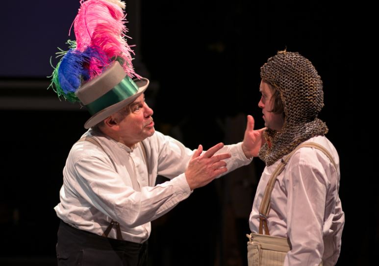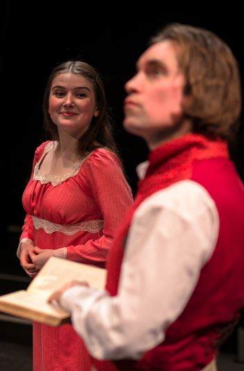 Zac Karaman plays Peregrine Proteus throughout with an admirable sureness. David Bentley gives an admirable example of true friendship as Quill as well as getting involved in the company scenes. Saskia Moon as Maria shows us a principled sweetness – I nearly went into Bernstein on occasion. Everyone gives it their all and creates a true ensemble production. However, I feel bound to pick out a couple of performances that caught my eye, without prejudice to anyone else involved. Holly Hurrrell, whose named role is ‘Miss Kick-Her-Heels’ showed remarkable adaptability, transforming between character types physically, verbally and most importantly, plausibly, at the drop of a hat. Simon Higginson’s canter through the slippery manipulator Plausible Screw, the print shop boss Quarto and the elegant Sir Harry Hassit was a good watch, too, and I enjoyed the ridiculousness of Dotti Lawson’s Miss Made-Up. Costume designer Jenny Richardson deserves a nod here, too, not least for Miss Made-Up’s hat in Act I, but generally for finding a way to get the maximum effect out of seemingly minor (I know some of them weren’t) changes. A hat here, a waistcoat there and hey presto! A different character.