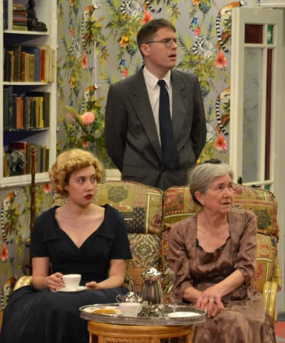 The Hollow takes place in the eponymous home of Lord and Lady Angketell. The couple are played by Geraint Thompson and a sparkling Frances Billington, who knows exactly what kind of play she is in and exactly how to play her character, an eccentric aristo with a flair for forgetfulness and a shrewd eye for the truth. Christie’s servants are usually entertaining and the Angkatells’ are no exception. James Phillips is suitably mordant as the butler and Asha Gill delightful as a star-struck maid; both actors have excellent comic timing. Milly Newman plays the Angkatells’ daughter Henrietta, a sculptress whose current work-in-progress is somewhere offstage left where it is admired from time to time by members of the cast, all of whom seem to have a different idea of its height and position.