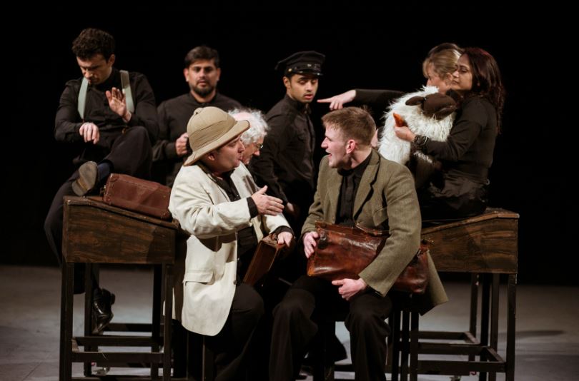 However, given the original complexities of the book, and now with the added overlay of Hovatter’s unorthodox vision, following the narrative becomes somewhat of a challenge. For example, in the opening scenes there was the puzzle of where we were located, and in what era, given the wearing of modern dress and the use of mobile phones. We then discover Amy Dorrit reading a Dickensian book called Little Dorrit while the hero Arthur Clennam is studying history at University. Clearly, nothing is going to be straightforward in this production, and we are subsequently hurtled into a scene where the ensemble act out a train journey on the Underground. We then seem to be on a similar train journey, only this time, the ensemble are huddled together on a journey into the Himalayan foothills to Shimla. This, is now the India of 1907, and we seem to have entered the fantasy world of little Amy Dorritt and Arthur Clennam. Wow! Quite a lot to take in and possibly some stronger plot directions would help our understanding – especially because, in the early stages, there’s a frequent flow of new characters who are difficult to assimilate. Also, our understanding is not helped by some poor diction when characters are introduced.