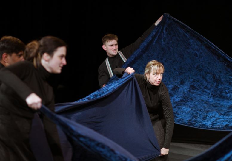 The set is minimal – and for props – just a few chairs with eight vintage wooden school desks on wheels. In fact, the desks are used frequently and effectively, for example, in the eye-catching opening sequence where the ensemble work hard in delivering clever movement and choreography.