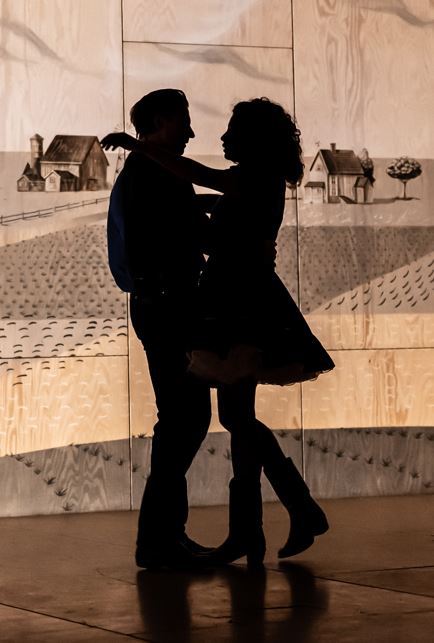 Aunt Eller is no cuddly grandma. Liza Sadovy gives her an edge, and some. She is pragmatically amoral, obdurate and steely. She is no quiet observer, but is in there, stealing an erotic kiss from Ali in passing. Here is a for-instance where this production burrows into the darker aspects of the plot.