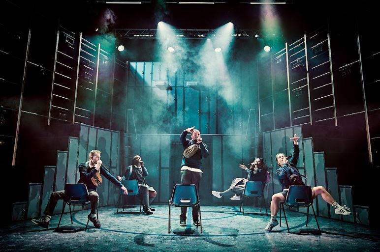 There is so much good stuff in this production it’s difficult to cover all of it. Theatrically it’s completely engaging, very entertaining and full of energy. The set, with its clever mix of tall, thin lockers, gym climbing walls and ladders, obliges characters from both centuries to climb up and down it, bringing to mind the old adage that it is, indeed, ‘a jungle out there’. The lighting creates both the dim, grimy London that Dickens knew, and the relentless, bright light of an inner city school but there is no distinct separation between the centuries; they bleed into each other.
