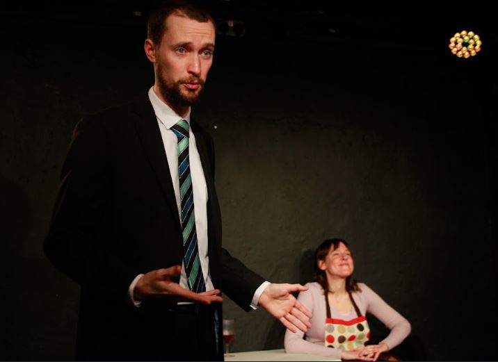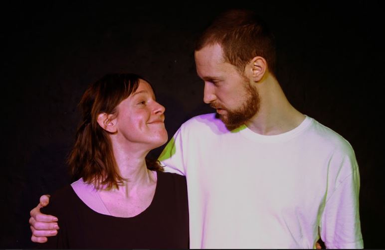We, the audience in the very intimate space of a fifty-seat theatre below the bustling Curtain’s Up pub in Baron’s Court, West London, witness the passion and the pangs as two actors break the fourth wall to share their lives.