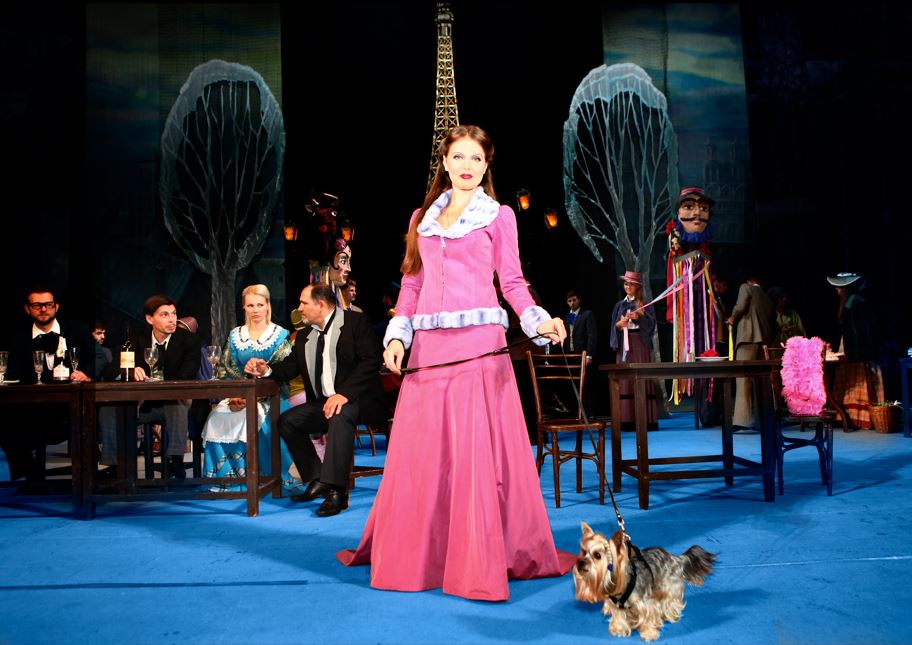 A small dog appears on stage during the scenes in the Latin Quarter, and of course steals the show completely, even among stilt walkers, toy-sellers and chorus members indulging in acrobatics by standing on each other’s shoulders.  A thoroughly naturalistic performer, it was hard to tell which of the dog’s antics were improvised, and which were part of the choreography, but he came close to getting the most enthusiastic round of applause at the end of the show.