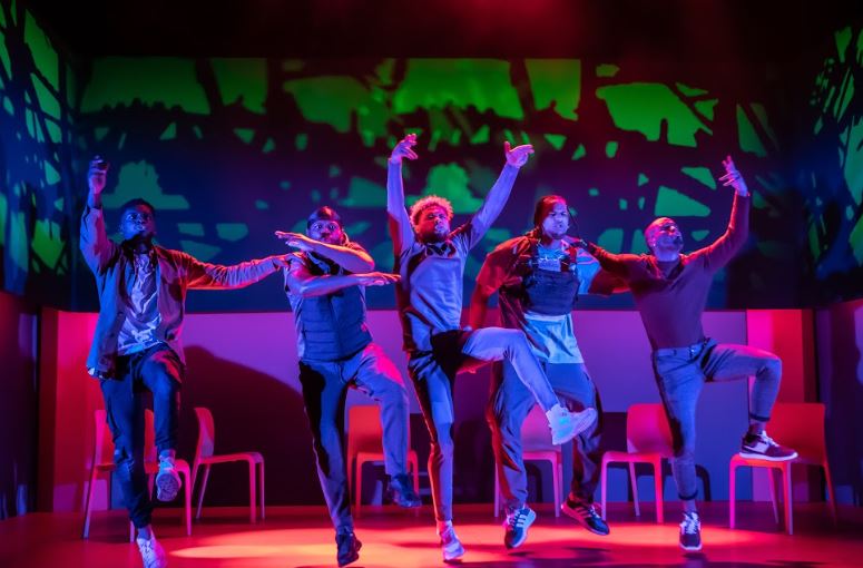 For Black Boys… is a multi-layered show with many different elements to it. Firstly as just a show and spectacle it is great fun to watch, with many funny moments and delivered in a way that at times turns the audience from observers into a one-bodied movement with its actors on stage. It is also delivered by six outstanding performers who excel in several different crafts, whether that be acting, singing or dancing, to deliver something that can at times be considered highly humorous but then cuttingly dramatic, relevant and poignant.