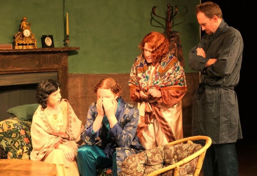 Spoiler alert! I will spare you the details of Edgar’s fate. The heart of the play is then about the different ways that people grieve, particularly in these days when saving face and maintaining a social front against all odds was paramount. Harold has carried on entirely emotionless, as if nothing had happened; Elizabeth has retreated into herself and the house, and other people have labelled her hysterical; you get the feeling Terence has given up his establishment Oxford education to find mystery in the ‘east’, and idealism, prescient in his thoughts on the future of the 20th Century. Though unsaid you get the feeling all this partly as a tribute to his childhood friend. Vanessa Avery’s response (brightly played by Simone White), in a lovely detail, is to cheer up the run down house with the whimsical ‘butterflies and pineapple’ art deco wallpaper designs of the time!
