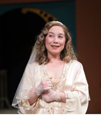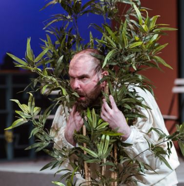 The set design of Alex Marker (who retained some of the comparable style of the era featured in the Questors’ recent production of Murder on the Nile) underpinned this party atmosphere, with the clever use of trellis windows and plants on stage acting as snooping spots for nosy characters to hear secrets and generate the gossip that fuels what becomes about as close to an attention-grabbing soap opera storyline as Shakespeare could possibly be.