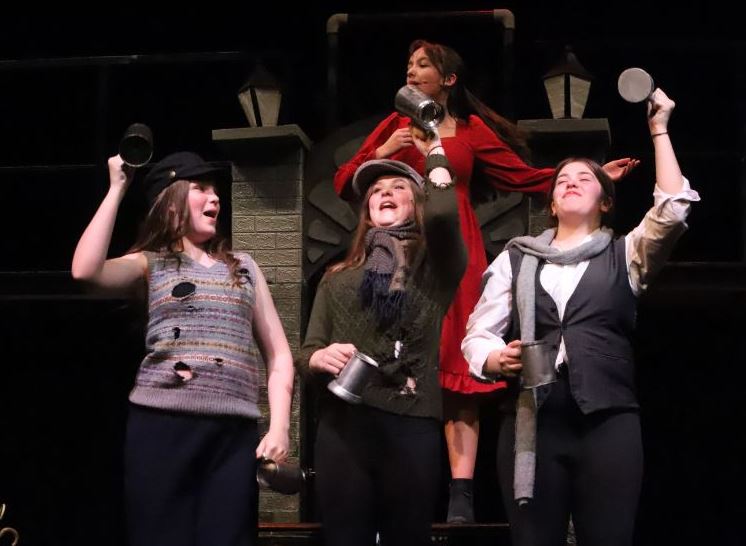 The backdrop was a grim, grey brick edifice of a Victorian workhouse (set design by Hannah Calarco) where grimy malnourished orphans in rags (costume design by Jo Scholes) were fed on nothing but gruel. No McDonald’s for them.