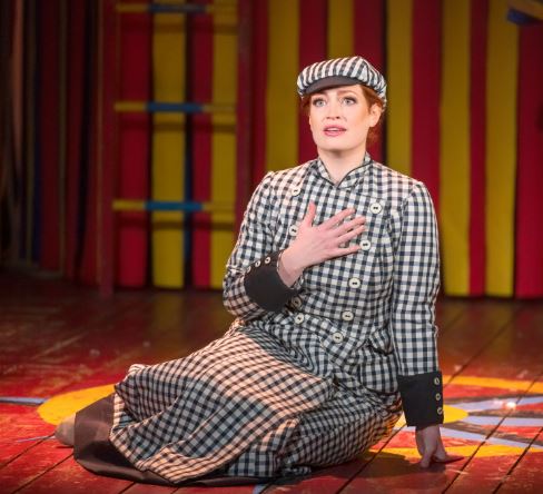 A circus big-top creates both the setting and the ambiance of the show. Designer Sara Perks’ multi-level fairground circus set allows three-dimensional movement. Its colours are of the Senyera, the yellow and red Catalan flag, and this vibrancy of colour follows through into the costumes. They are bold exaggerations of Victorian attire, except for Nellie Bly, whose costume replicates in black and white the travel suit and cap that Bly wore throughout the whole of the journey. The construction of the costumes is a work of art by Hazel Jupp’s wardrobe team at York Theatre Royal, as these had to allow for highly athletic movement, and quick-changes requiring much under-dressing.