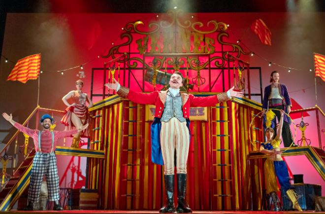 There has been lots of outside-of-the-box thinking in propping this touring production. A ladder variously becomes a carriage, a railway track or a ship’s rail. Two bicycles, adult’s and child’s, become locomotives, steam engines or … bikes. A fold-out ride-on elephant, emerging from a ladder and a cloak (its ears) and an actress’s leg (its trunk) is priceless in its ingenuity. While all is enhanced by Alexandra Stafford’s lighting and Edwin Gray’s sound, nothing remains static.