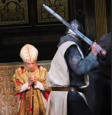 Any play that starts with a single supersonic scream at a pitch a common pipistrelle bat would be frightened by, is a play that immediately grabs attention. This is exactly the beginning of the Richmond Shakespeare Society’s staging of Murder in the Cathedral, T.S. Eliot’s play that explores the final days of Thomas Becket, the Archbishop of Canterbury, leading up to his assassination in Canterbury Cathedral in 1170.