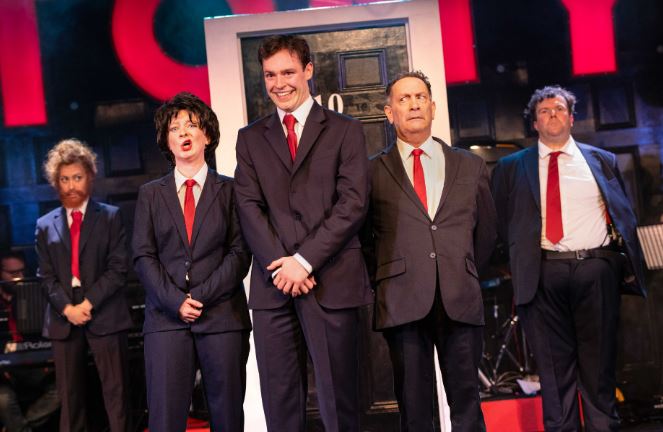 Here is a musical that fairly rattles along, so bursting with energy that you can almost see the steam as it races along from Cool Britannia to Cruel Blairmania, even as we hit the interval with “What could possibly go wrong?”   Along the way it takes in David Blunkett’s blindness, the death of Diana and a plethora of dictators.  All is fair game.