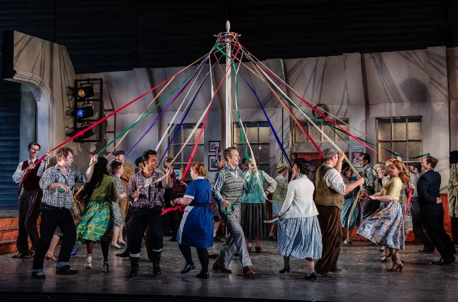 Would you trust the leader of your local council as a marriage broker? It is a risk worth taking for Garsington Opera, and one that succeeds magnificently. Smetana’s best-known opera is moved from its setting in 1860’s rural Bohemia and transposed to the English countryside in the end of the 1950s. The swinging sixties had not yet got underway, but local marriage brokers are still hard to find. In its revival of Paul Curran’s pre-pandemic production of The Bartered Bride, making the mayor the marriage broker is one of many twists, for of course the mayor has ulterior motives.