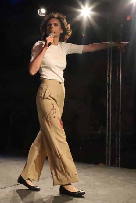 By the time we are seated, conspirators grumble about Caesar’s ambition, while offstage Rome’s commoners cheer as Marc Antony offers him a crown. Enhanced by discreet headset microphones, Richmond Shakespeare Society’s cast are confident and sure-footed with Shakespeare’s text, complete with slight adjustments where some roles have been gender-flipped: most notably Francesca Ellis’s honourably conflicted Marcia Brutus, but also Josie Teale’s quietly authoritative Decia Brutus, and Lily Tomlinson’s Metulla Cimber, and Esme Niblett’s Pindarus.
