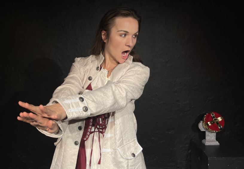 Taken from his book Rogue Shakespeare, Ryan J-W Smith brings his play, Pretty Witty Nell to the somewhat claustrophobic but equally atmospheric stage of The Curtains Up theatre, Baron’s Court. Crafted poetically, using rhyming iambic pentameter, this stylish piece charts the true-life story of Nell Gwyn and her journey from orange-seller to King’s mistress. Told ‘autobiographically’ by Nell herself (played by Hannah Attfield), the piece provides the audience with a poetic account of her life and times.