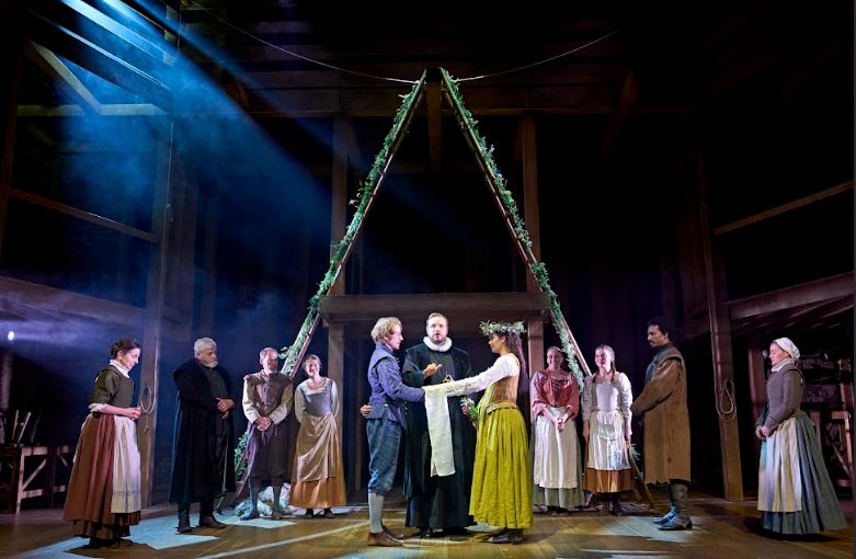 Both Tom Varey, as Will, and Madeleine Mantock are making their RSC debuts and are largely television actors, but make lithe and vivacious stage actors, depicting the tenderness of early love. From their youthful gambols around the stage to the crestfallen pathos as they finally realise their lives have drifted apart and only united in grief, they are utterly believable in their journey to maturity. Mantock’s picture of Agnes’ shattering anguish at the death of her only son, is heartrending. It comes after we have seen the palpably expressed love for her children grow as she works to bring up Susanna and the twins alone.