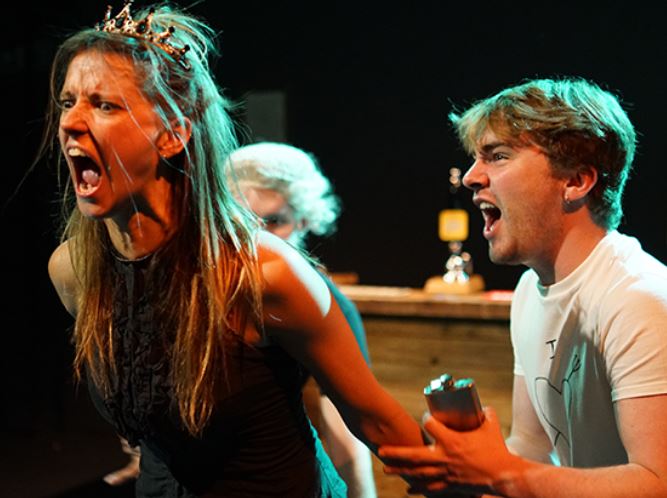 Firstly, as mentioned, the performances of each of the three actors should be highly praised. Cara Steele grows throughout and her presence on stage by the end is strong and captivating. Gabriel Fogarty-Graveson shows great range especially in his physicality changes between multi-roleing. Felix Grainger injects all his characters, even the more theatrically heightened ones, with an almost familiar everyman energy which anchors them as recognisable even in their hyper forms.