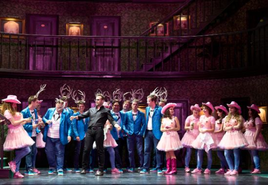 There are two main sets of hotel guests. There are the Sloanies, Don Giovanni and his straightforward friend Don Ottavio, with Donna Elvira and Donna Anna, and The Commendatore, Anna’s father. Then there are the chavs, a stag party and a hen party out celebrating the forthcoming wedding of Zerlina and Massetto. The glittery pink girls and the glittery blue boys are clad in TK Maxx’s best. There is quite a bit of naughtiness as they chase each other’s conga lines, teased on by joke costumes. The girls’ plastic falsies are a particularly cheeky come-on. The Glyndebourne Chorus has enormous fun as the party-goers, in a typically energetic performance. It could be however that a serious point is being made here of the ambivalence in today’s society, titillating encouraging on one hand and draconically censorious on the other, Love Island versus #MeToo. At times during the opera’s intense moments, they gather, ringed around on another level from the action, physically and metaphorically, as silent voyeurs.