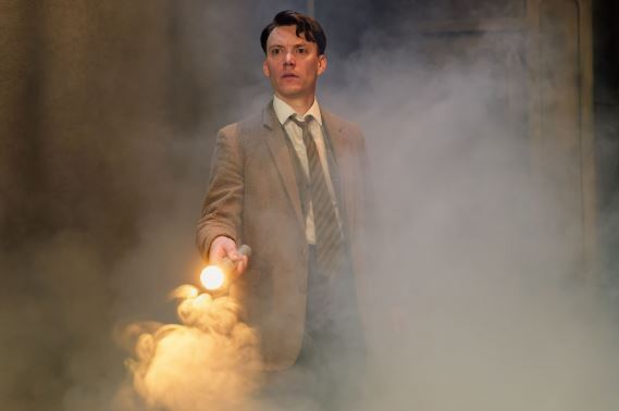 The second act brings unrelenting horror as the story unfolds. There are genuinely creepy moments, not to mention The Woman in Black herself walking down the aisle. The press night audience screamed in sheer terror at events in this strange house cut off by a causeway. In the house, Mr Kipps, as a solicitor to the recently deceased, unwisely sleeps over with an ineffectual dog for company. (What is wrong with this man?!). Through tangible and well-timed smoke effects, the creepy and dimly lit abandoned rooms on the upper floor and the ghostly air of malice really builds up the tension, plus strong writing and plot that’s unnerving carries us along, raising the hairs on the back of neck quite nicely.